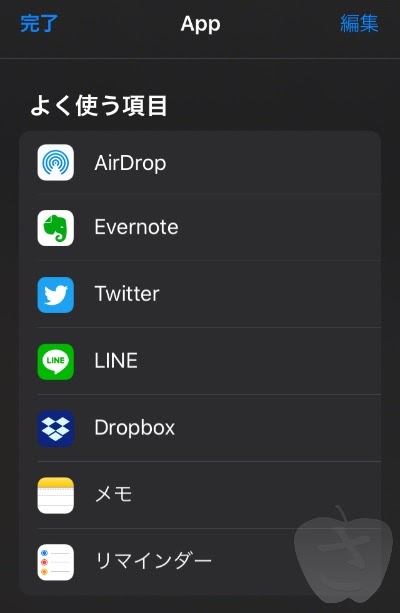 誤タップしても、即送信されるわけではないけれど、不要なものが表示されるので、共有メニューを出すたびに小さなストレスが積み重なってしまいそう。